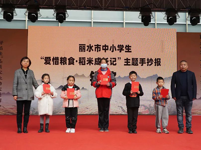 为了让孩子们在中小学生时期播下“爱惜粮食”种子,感受“谁知盘中餐,粒粒皆辛苦”深刻含义,收获一颗“懂农爱农”粮心,丽水市农业农村局、丽水市教育局、共青团丽水市委员会、丽水市妇女协会、丽水市科学协术协会、丽水日报社等单位特别推出“稻米成长记·爱惜粮食”主题手抄报创作比赛。此次“爱惜粮食·稻米成长记”主题手抄报比赛共收到1000多份手抄报,在活动现场,对部分获奖者及部分优秀指导老师进行了颁奖。
