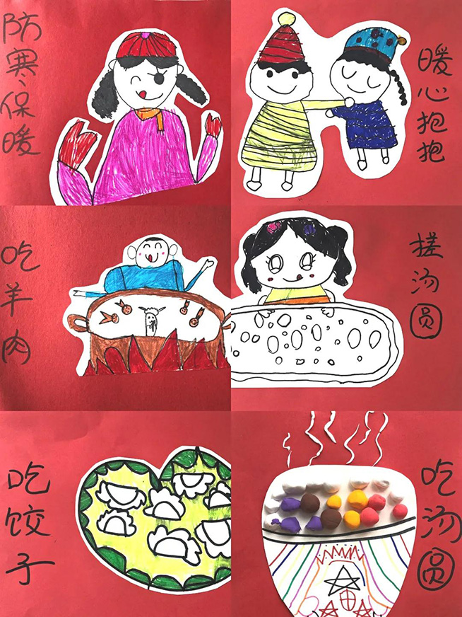 此次主题活动的开展,带来的不只是美味的食物、好看的作品,还有孩子们的欢声笑语。孩子们不仅了解了冬至的来历,知道了传统文化习俗,而且真切地感受到了“冬至”的欢乐氛围,让中国的传统文化和传统美德在孩子们身上不断的传承下去。也让孩子感受到幼儿园大家庭带来的温暖。