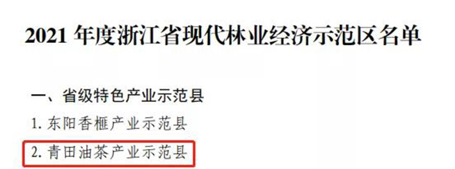 ●省级特色产业示范县——青田油茶产业示范县