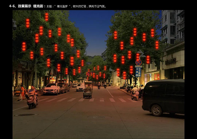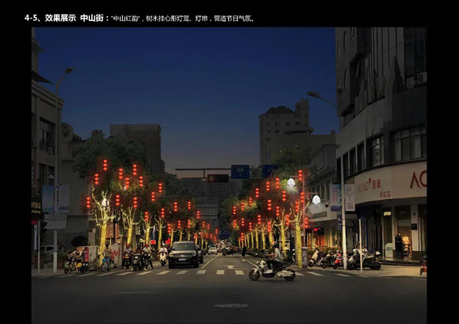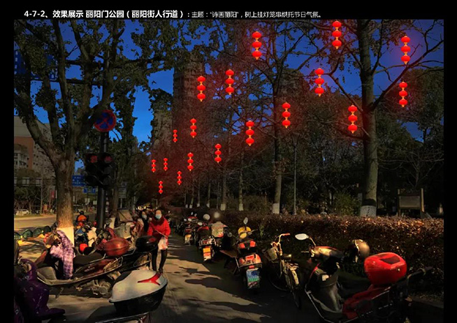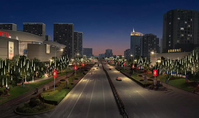 花园路、中山街等路段、节点也都有不同的主题。目前2022年市区春节亮化工程即将开始施工,预计在春节前一周完工并试亮灯。