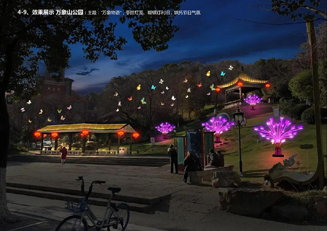 公园小树林将设置“光影画卷”主题,剪影灯让游客、市民完美互动娱乐体验,许愿灯体现节日气氛,美好祝福