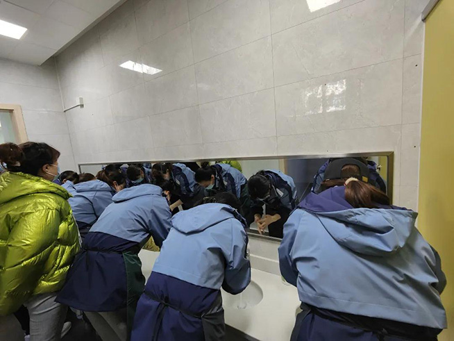 实际操作中保育员老师们一边操作一边口头讲解每一个步骤,娴熟流畅的动作无不流露出她们平时对孩子们的爱和她们日常工作的扎实功底。