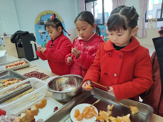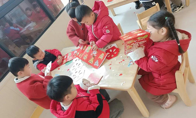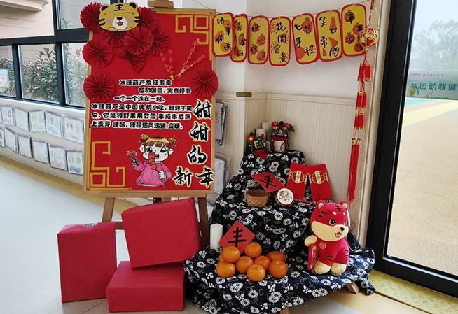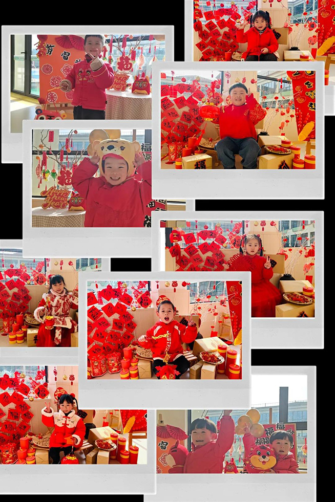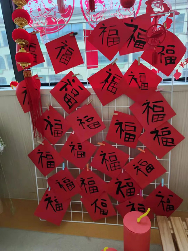 幼儿园里新年的氛围,在孩子们的巧手装扮下越来越浓。瞧!她们有的贴对联,有的贴窗花,有的挂灯笼,有的做糖葫芦,有的卷鞭炮......新年味儿迎面而来,幼儿园里的每个角落都洋溢着节日的喜庆气氛。
