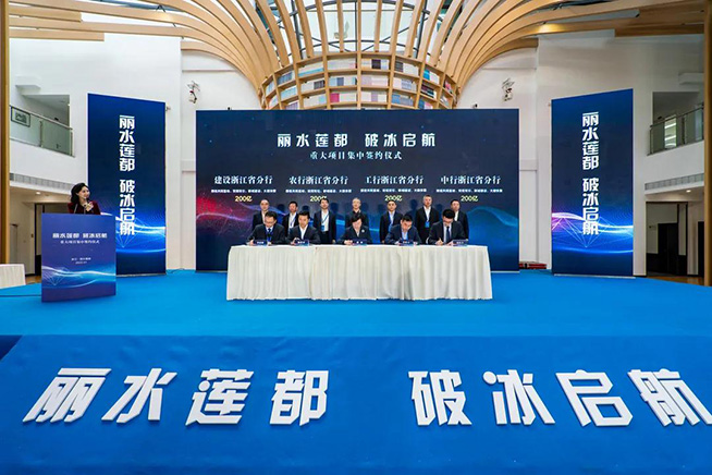 在签约现场,莲都区政府与中国工商银行浙江省分行、中国农业银行浙江省分行、中国银行浙江省分行、中国建设银行浙江省分行四家金融机构分别就4个金融支持授信项目签署银政战略合作协议,相关金融机构将在符合国家法律法规、金融政策和信贷制度的前提下,全力支持莲都区共同富裕示范区建设,在“十四五”期间分别向莲都区投放不少于200亿元意向性融资,助力重大项目建设“加速跑”。