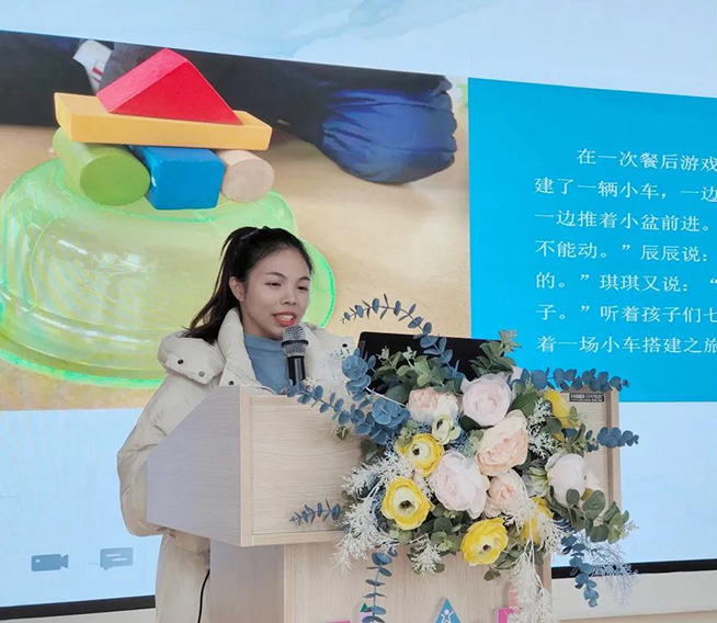 最后,陈园长对每个案例进行点评,她肯定了老师们在活动中的努力并提出几点建议:在木玩游戏实施的过程中,教师要基于儿童立场,追随儿童,不断提升他们学习的广度和深度,同时要尝试让教育回归本真,看见儿童、理解儿童、支持儿童,不断提升自己的专业素养。