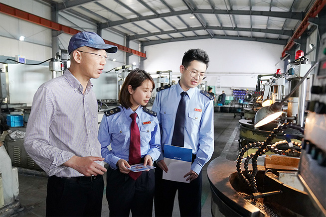 云和立信泵阀制造有限公司所属行业是有色金属铸造,除普遍税种外还涉及环保税等小税种,针对企业申报税费的情况,“助企服务团”适配了有制造业税源管理经验和熟悉环保税的税管员,及时上门辅导企业进行了相关申报,让企业享受到了应有的优惠政策。