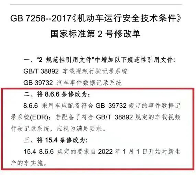 《机动车运行安全技术条件》国家标准第2号修改单规定,从今年1月1日起,国内新生产的乘用车要配备符合要求的“EDR”。这个装置俗称汽车黑匣子,当车辆发生碰撞或者速度剧烈变化时,就会被触发,开始记录。新能源汽车独立研究者曹广平介绍: