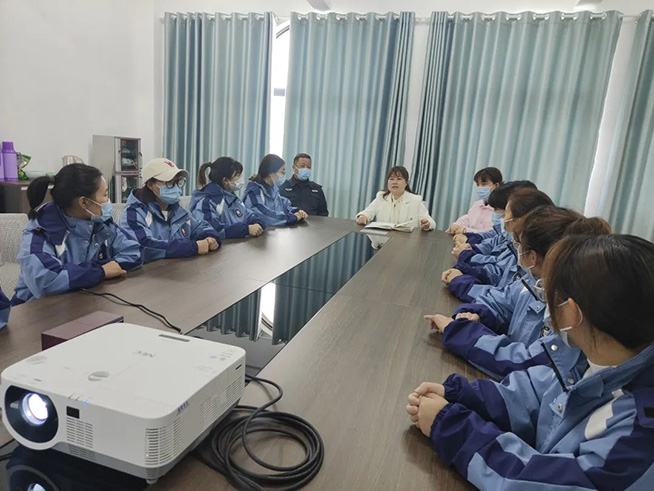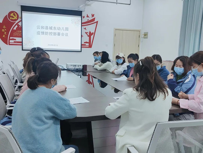 副园长王伟霞组织教职工部署疫情防控演练工作,强调每组成员的岗位职责,明确其流程做具体讲解,并要求物资保障组提前准备好相应物资,力求做到演练有序不慌乱。