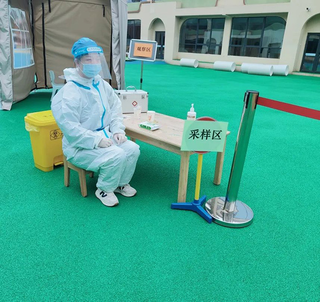 根据园所地理位置,核酸采样地点安排在户外空旷操场,核酸检测场地有出入口、等候区、测温区、信息采集区、核酸采样区等区域组成,各组人员快速行动,将场地、物资准备就位,并报告副园长可开始核酸检测应急演练。