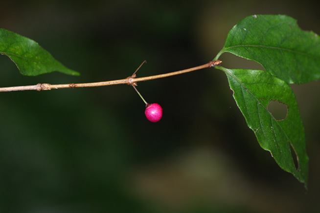 大盘山忍冬花色秀丽,果实在成熟时紫红色、淡紫色或白色,呈半透明状,倒挂形似透明灯笼,十分奇特,可作为优质的园林绿化植物。