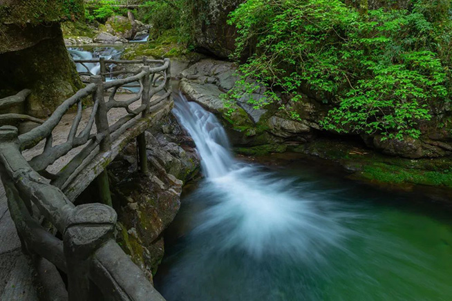 九龙山名山公园位于丽水市遂昌县,以“浙江九龙山国家级自然保护区”为核心。九龙山森林覆盖率高达98.8%,是众多古老孑遗植物的避难场所,中山地带分布着面积达600余公顷的原生性常绿阔叶林,为亚热带东部地区所罕见,是中国17个具有全球意义的生物多样性关键区域之一。九龙山呈“九脊六沟”之态,区内山奇水纵、断崖飞瀑、朝云暮雾、古木参天、奇花异草、鸟鸣鹿呦,构成九龙山多姿多彩的山水画卷。