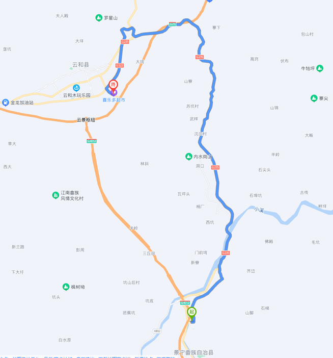 景宁互通→人民北路(2km)→G235国道(直行25km)→仙宫大道(0.5km)→云和互通