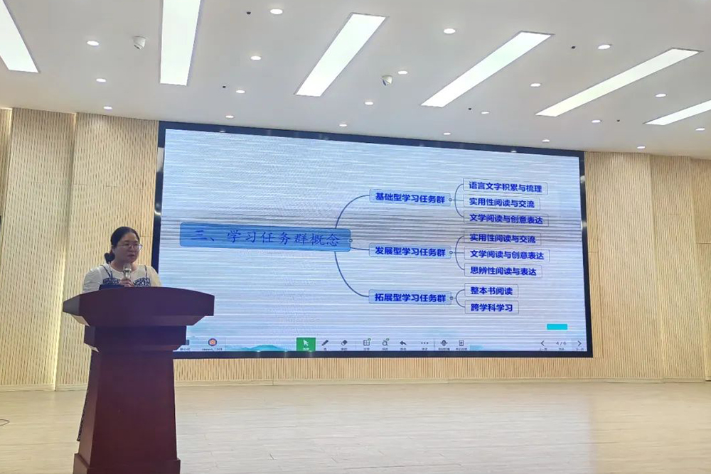 语文老师郑海姑就“语文新课标”进行了解读。她带领老师们对小学语文新课标几个重要概念进行重温,并且分享了她对育人价值、语文核心素养、学习任务群等概念的一些深刻思考,为全体语文教师指出努力方向,为提高学校语文教学质量奠定基础。