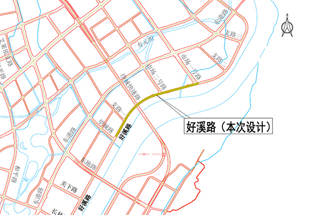 好溪路二期(望城路-市场一号路)工程位于丽水市城东区块,南起望城路,北至市场一号路,道路全长约1210米,宽24 米,总用地面积49748平方米。项目主要建设道路工程、桥涵工程,配套建设给排水、电力、通讯、燃气等管网管线和照明、绿化、交通安全标志标线等设施。