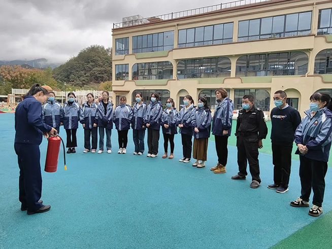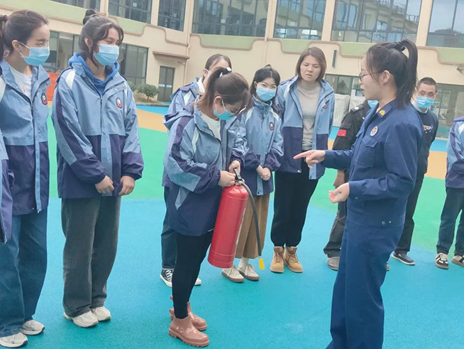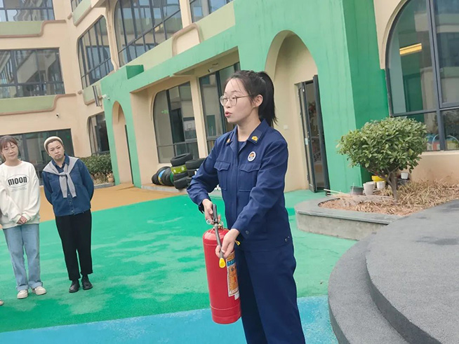 最后,杜教官还对全体教职工进行了消防相关培训,并演示了如何使用灭火器,帮助教职工掌握正确的操作方法。