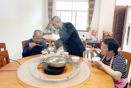 2021年,雷明春调往县城工作,却不嫌麻烦地每天回乡。面对同事的不解,雷明春开玩笑地说“家里有宝”。那个“宝”就是每天站在家门口望眼欲穿等着他回家的雷延德。雷明春的儿子雷煜阳和儿媳也在他的影响下,继续传递着父辈们的善举,每逢节假日,远在宁波工作的雷煜阳总是拖家带口回到老家,并主动照看雷延德。如今,雷延德年近耄耋,生活自理能力严重衰退,雷明春夫妇在照料生活起居上更加细致,饭菜要煮得软烂、地面不能太光滑、天气冷热要随时关注……雷延德逢人就指手划脚地夸赞雷明春,说自已好福气。
