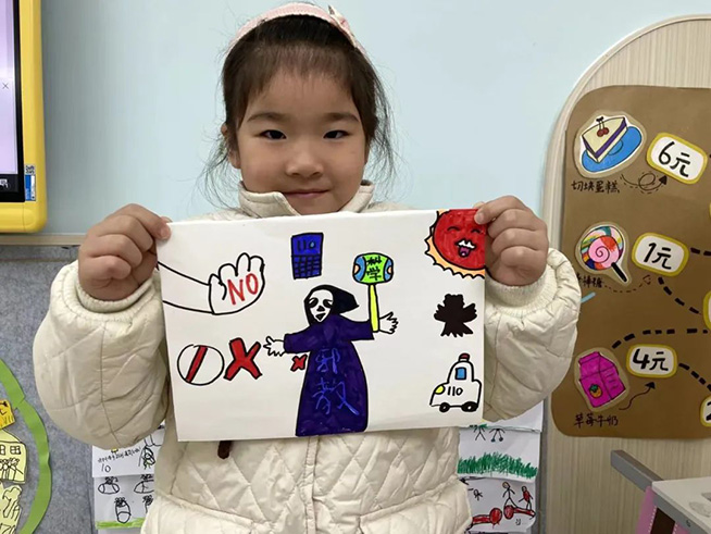 各班教师通过“反邪教”视频,向小朋友们介绍了什么是邪教、邪教的特征、邪教的危害、邪教骗人的套路等“反邪教”知识,教育小朋友识别邪教、防范邪教、抵御邪教的小妙招。大班的孩子们还画了“反邪教”手抄报。