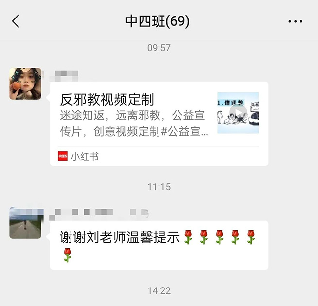 孩子是祖国的未来,是每个家庭的希望。“反对邪教,共筑平安”是幼儿园、家庭和全社会义不容辞的责任,为了给孩子创造一个健康快乐的成长环境,让我们家园携手,共同筑起全社会反对邪教、关爱家庭、珍爱生命的坚强阵地,确保幼儿健康成长,共建文明和谐家园!(来源:云和城东幼儿园)