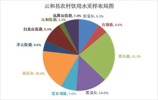根据各乡镇街道提供的供水点数量、服务人口数及水源地储水量等情况,按照“合理布局,远近结合,全面覆盖”的原则,通过实地调研划分9个网格,结合每个网格实际情况讨论出最科学、最合理的采样点,选取全县具有代表性的43个农村饮用水源地,并制定出详细的采样方案。