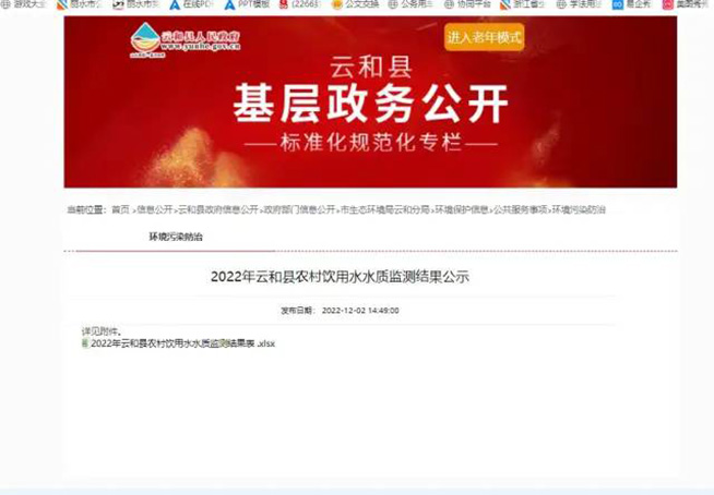 经检测,选取的43个农村饮用水水质达标率为100%,其中达Ⅰ类标准限值的指标占61.5%。高胥村一村民说,“以前就知道我们这里的水好,但不知道好到什么程度,这次就明白了好在哪里,可以更放心喝了。”水质监测结果已通过云和县政府门户网进行发布。