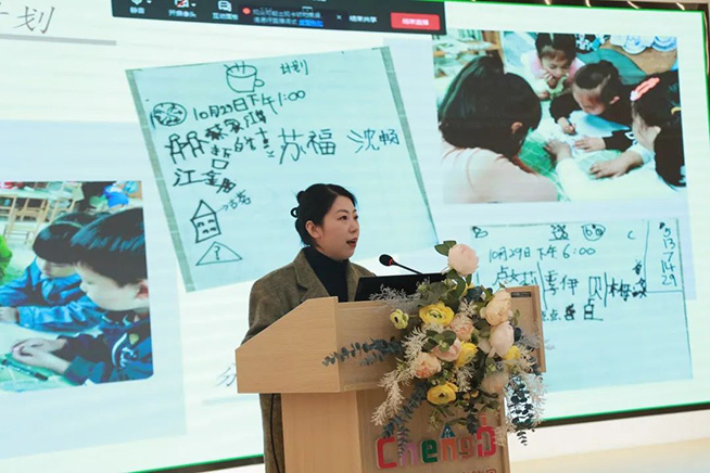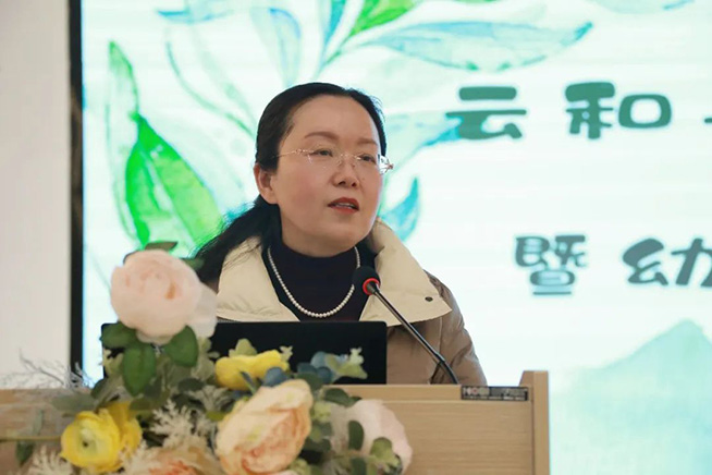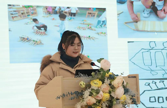 分享环节后,云和县教育局云和木玩游戏教育研究中心主任唐毅、县教育发展中心副主任,幼教教研员刘蓉对本次课程故事进行了点评和总结。两位专家肯定了课程故事中孩子们专心、专注的游戏状态,教师真实记录幼儿的游戏实录,引导、助推游戏发展。