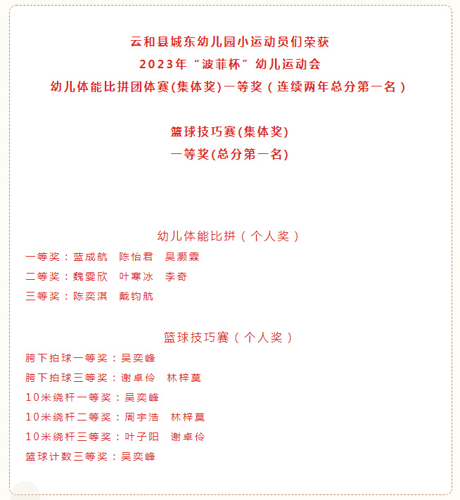 比赛已经落下帷幕,铭记在心里的是孩子们拼搏的身影,是家长们的配合与支持。荣誉的背后是不懈的努力和挥洒的汗水,相信这种坚持不懈、奋勇拼搏的精神,浸润孩子们快乐幸福的一生,为了不起的宝贝们点赞!