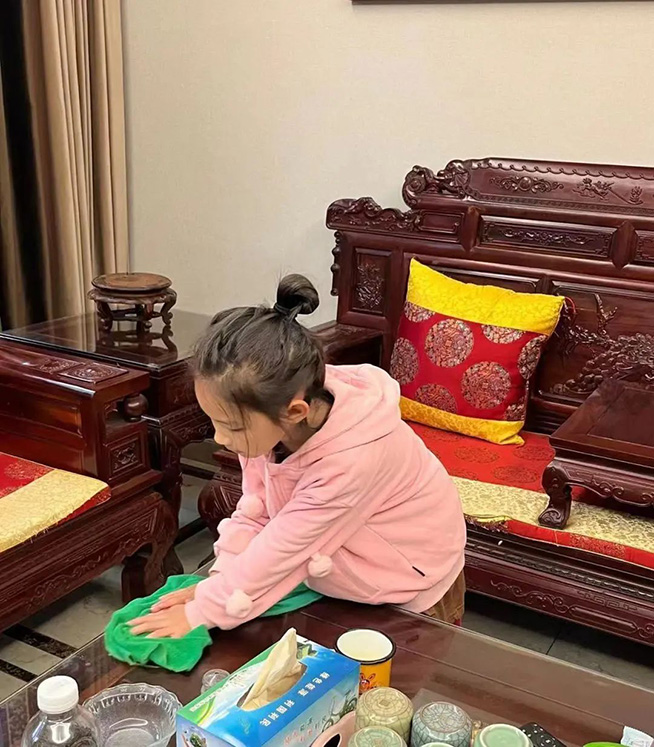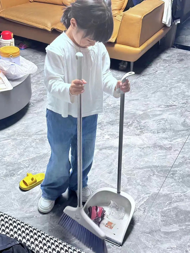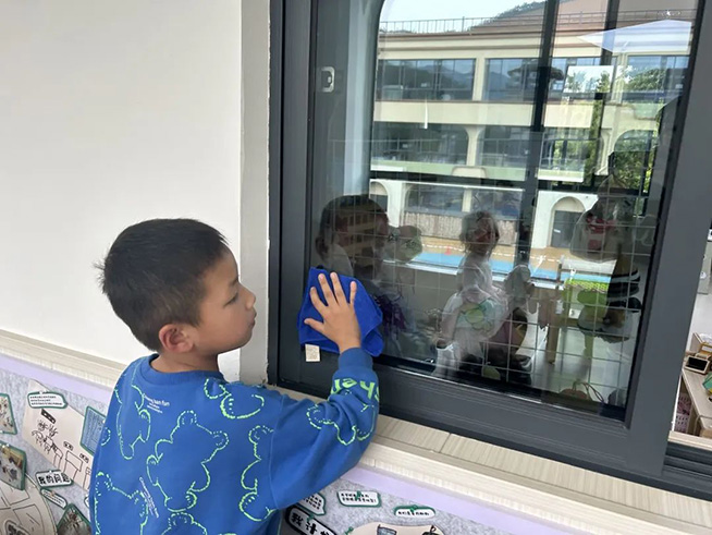 在幼儿园里,孩子们化身劳动小能手,自己的事情自己做,搜寻日常活动的每个角落,打扫的一尘不染。他们亲身体验着平凡工作的不平凡。