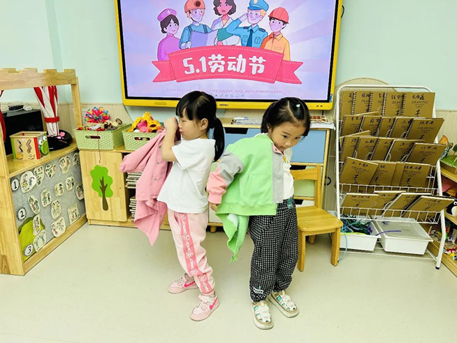 老师们通过谈话、观看图片、视频等形式,让幼儿了解五一劳动节的由来,知道5月1日是国际劳动节,是所有劳动人民的节日。