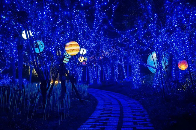 穿梭林间,你便会看到超大月亮、各大星球、神秘莫测的银河……感受着“星系变幻”,这份“宇宙级”的浪漫,定会让你大饱眼福。