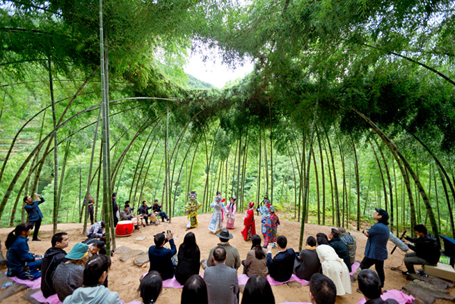 位于松阳叶村乡横坑村竹林剧场的形态每年会有一些变化, 竹叶的生长、生死置换,让这个竹林剧场成为一个有生命的新陈代谢体。习习凉风,伴随着竹叶“沙沙”作响。置身其中听一曲松阳高腔,享受苏东坡都未曾有的待遇!