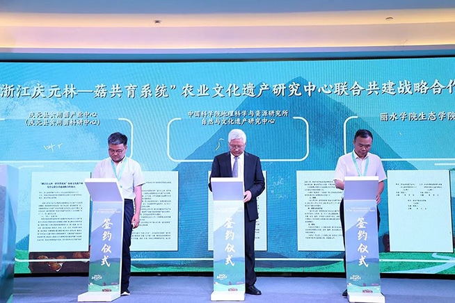开幕式还举行“浙江庆元林-菇共育系统”农业文化遗产研究中心联合共建战略合作协议签约仪式。