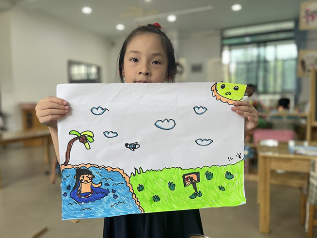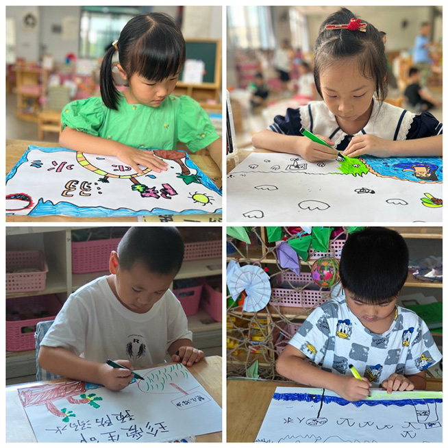 大班宝贝经过精心的准备,将自己对防溺水常识的理解融入到了小小的画笔中,发挥自己的奇妙的构想,运用丰富的想象力,描绘出了一幅幅内容丰富、充满童趣和警示意义的防溺水宣传海报。