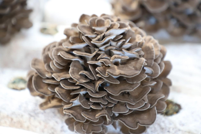 “庆元灰树花”是全国率先采用“菌棒式割口两茬出菇”模式进行栽培的食用菌品种。特定的地理环境和独有的栽培模式,使得“庆元灰树花”的子实体颜色呈灰褐色,朵型圆整,叶片多而紧凑,菌柄更短,商品性状优,口感更佳,相比其他区域种植的灰树花具有更浓郁的特有香味,子实体和菌棒不与土壤直接接触的栽培模式,也使“庆元灰树花”无农残,重金属含量较低。