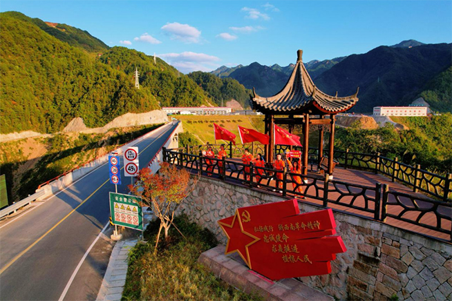 为了让这条路融合更多元素,体现沿线景观秀丽、路域环境优美。缙云县交通运输部门结合沿线地形地貌设计,将两侧绿化与四季花卉进行错落有致地融汇,种植了银杏树、红叶李、无患子、红叶石楠球、波斯菊等。尤其是为了让红色文化沿着最美公路“活”起来,缙云县交通运输部门紧抓建党百年的时机,结合周边县级红色爱国主义教育基地“红军洞”景点,在路段终点处设计观景平台,并在周围设置4座党建与革命雕塑,一方面利于来往群众欣赏山谷风景,另一方面用于宣传原浙南第三游击支队建立地下兵工厂的英勇革命历史,不断激发群众爱党爱国的热情,让红色文化扎根美丽乡村。