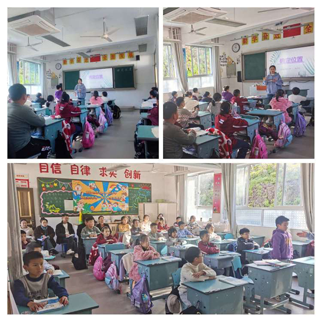 张行行老师送教的是四年级上册的《确定位置》。张老师通过同学们在教室的位置感知“列”与“行”,从而引出数对的概念;接下来,张老师引导学生理解数对的意义和意思,学会用数学语言表示数对的含义;最后引导学生感悟数对在生活中的应用。整节课教学流程严谨流畅,学生表现踊跃,课堂气氛活跃,师生互动高潮迭起,教师教得轻松,学生学得愉快。