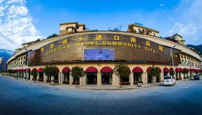 青田侨乡进口商品城始建于2015年,位于青田县油竹街道,规划面积29万平方米,市场分两期建设。现已建成一期四个市场及红酒中心,总面积9万平方米。现有企业278家,主要有葡萄酒、百货、母婴、食品、服饰、咖啡等品类。其中,葡萄酒是青田第一大进口商品,青田县还专门建设了世界红酒中心,整个市场已汇聚2万多款的进口葡萄酒,是国内最大的进口葡萄酒集散中心。