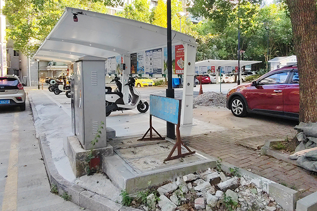 7月2日,记者在和润园小区看到,施工人员正在进行充电桩设备安装调试及AI监控系统安装,现场繁忙有序。“目前,我们在和润园、水镜佳苑等试点小区实施云和县非机动车充电桩改建项目,和润园已完成雨棚安装,正进行充电设备调试,水镜佳苑正进行雨棚安装,待安装完成后即可进行设备调试,目前所有试点工作基本建设完成,后续居民可扫码进行充电。”县交通投资公司项目负责人介绍道。