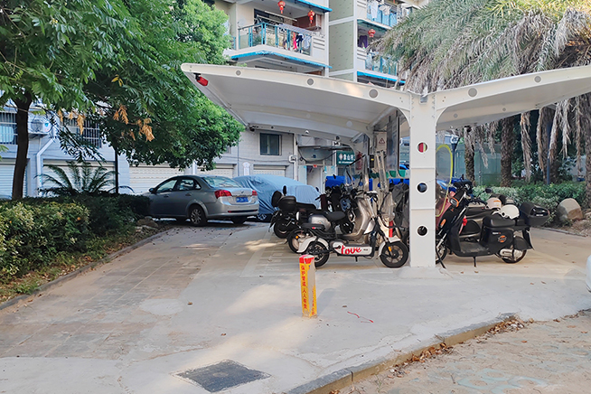 据了解,这些新增的充电设施不仅支持便捷扫码充电,还融入了智能安全元素,如灭火器、AI视频监控等消防设施,构建起全方位的安全防护网。同时,配套建设电动自行车雨棚,也为电动自行车提供了遮风挡雨的温馨港湾。